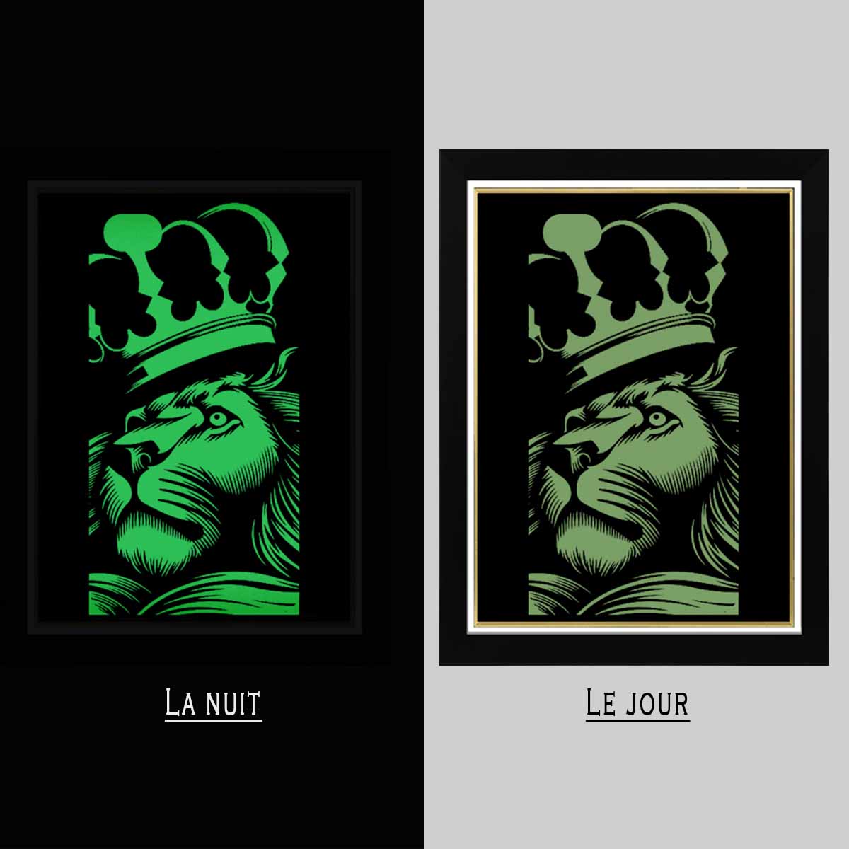 Offrez une touche moderne et élégante à votre espace avec nos tableaux photo lumineux. Dotés d’un design contemporain en noir avec cadre en verre, ils émettent une lumière verte dans l’obscurité, créant une atmosphère apaisante et captivante. Parfait pour illuminer votre intérieur de manière durable et esthétique.